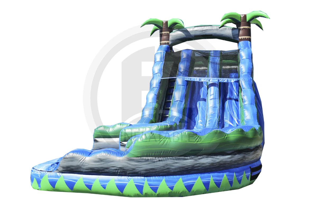 18 Ft Blue Crush Curvy EZ Inflatables Water Slide. It’s a perfect option for any event where folks want to cool off and have some adrenaline pumping fun. Dimensions: 25'x16'x18', stakes, transportation bag. 1 year limited warranty