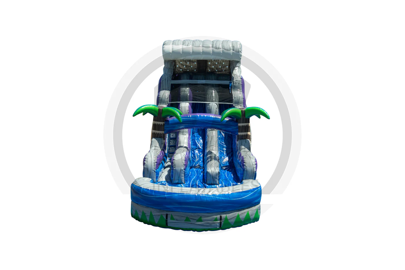 18 Ft Tsunami Boulder Crush Dual Lane EZ Inflatables Water Slide. It’s a perfect option for any event where folks want to cool off and have some adrenaline-pumping fun. Dimensions: 36'x13'x18', stakes, transportation bag. 1 year limited warranty