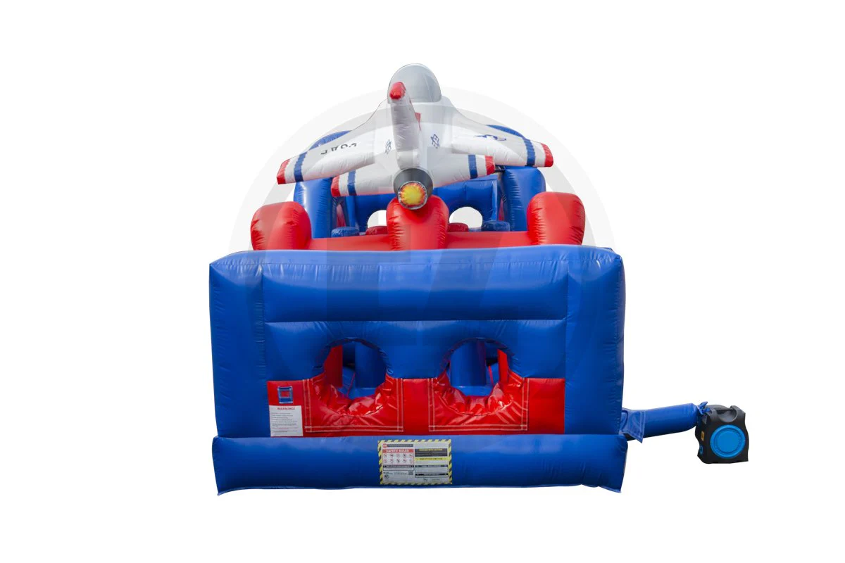 Air Force Obstacle Course Squeeze through tunnels, jump over barriers, slip underneath bars, and push your way past any obstacle. Dimensions: 30'x10'x10', stakes, transportation bag. 1 year limited warranty *ORDER YOURS TODAY*