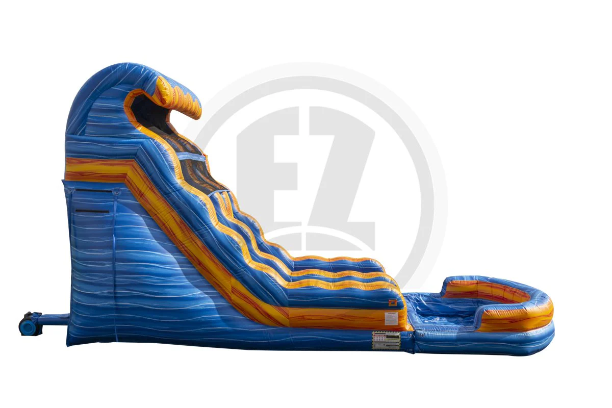 18 Ft Melting Ice DL - EZ Inflatables Water Slide. It’s a perfect option for any event where folks want to cool off and have some adrenaline-pumping fun. Dimensions: 32'x11'x18', stakes, transportation bag.